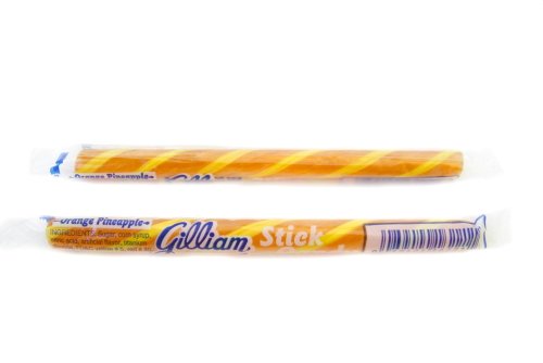Individually wrapped Old Fashioned Orange-Pineapple Candy Sticks - 80 sticks to a box. Approx. 5 inches long. IMPORTANT: Due to the fragile nature of this item we cannot guarantee that all of the sticks will arrive unbroken. Although we go to great lengths to protect the product from damage, we are not responsible for broken sticks. Net wt. 0.49oz. each Total Net wt. 39.51 oz.
