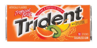 Trident Tropical Twist Sugarless Gum with Xylitol - 12 x 18 stick packs = 216 sticks of sugar free gum Reviews